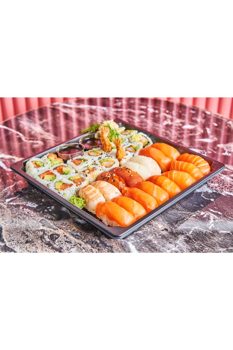 16 Nigiri, 8 Laks maki, 8 Tempura maki (F,SK,SE,G,B)